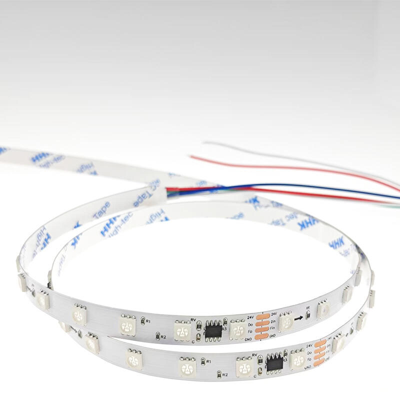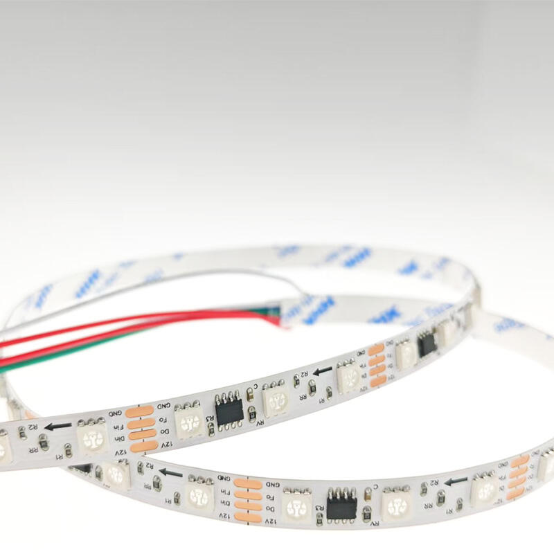Mit der standardmäßigen 5,0 mm x 5,0 mm SMD-LED-Gehäusegröße handelt es sich derzeit um eine der marktgängigsten und technologisch ausgereiftesten RGB-LED-Lichterketten-Lösungen. Sein großes emittierendes Flächenlicht sorgt für hohe Helligkeit und hervorragende Farbmischung. Jede LED integriert drei unabhängige Chips: rot (R), grün (G) und blau (B). Die extrem hohe Dichte eliminiert effektiv die „Lichtflecken“ oder „Körnigkeit“, die herkömmliche Lichtleisten mit niedriger Dichte erzeugen können. Nach dem Einschalten erscheint das Licht kontinuierlich und gleichmäßig wie ein Band, wodurch ein exzellenter visueller Effekt entsteht, besonders geeignet für Anwendungen, bei denen eine hochwertige Ambientebeleuchtung erforderlich ist. Verwendet werden hochwertige flexible Leiterplatten in Gelb oder Weiß mit einer Breite von 10 Millimetern. Eine Breite von 10 mm bietet bessere mechanische Festigkeit und größere Wärmeableitungsfläche, wodurch die Leuchte robuster als übliche 8-mm-Lichtleisten ist und Biegen sowie Dehnen während der Installation besser bewältigt. Die dicke hochwertige Kupferfolie (üblicherweise 1–2 Unzen) gewährleistet einen geringen Spannungsabfall, sodass auch bei längerer Kabellänge am Ende keine nennenswerte Helligkeitsminderung oder Farbabweichung auftritt. Die Standardbetriebsspannung beträgt DC12V/24V, was im Bereich der RGB-Lichtleisten die sicherste und am weitesten verbreitete Spannungsstufe darstellt. Die Leistung pro Meter liegt normalerweise bei etwa 10 W und bietet ausreichende Helligkeit. Sie kann sowohl als indirekte Beleuchtung als auch als zusätzliche funktionale Beleuchtung in bestimmten Anwendungsbereichen eingesetzt werden. Standardprodukte verfügen in der Regel über vorgesehene Lötanschlüsse oder Steckverbindungen. Wir unterstützen individuelle Anpassungen entsprechend Ihrem Steuerungs- oder Stromanschlusstyp – egal ob Stecker- oder Buchsenverbinder, Schraubklemmen oder direkte Anschlussdrähte – alle Optionen können berücksichtigt werden, um eine nahtlose Integration in Ihr System sicherzustellen. Die Rückseite ist mit hochwertigem 3M-Zweifachklebeband vorbeschichtet, das eine starke Haftkraft aufweist und einfach abgezogen und angebracht werden kann, wodurch der Installationsprozess erheblich vereinfacht wird und die Festigkeit sowie Flachheit nach der Montage gewährleistet ist.